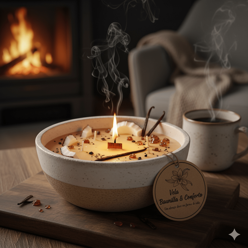 O perfume quente da baunilha envolve o espaço com uma sensação de aconchego.